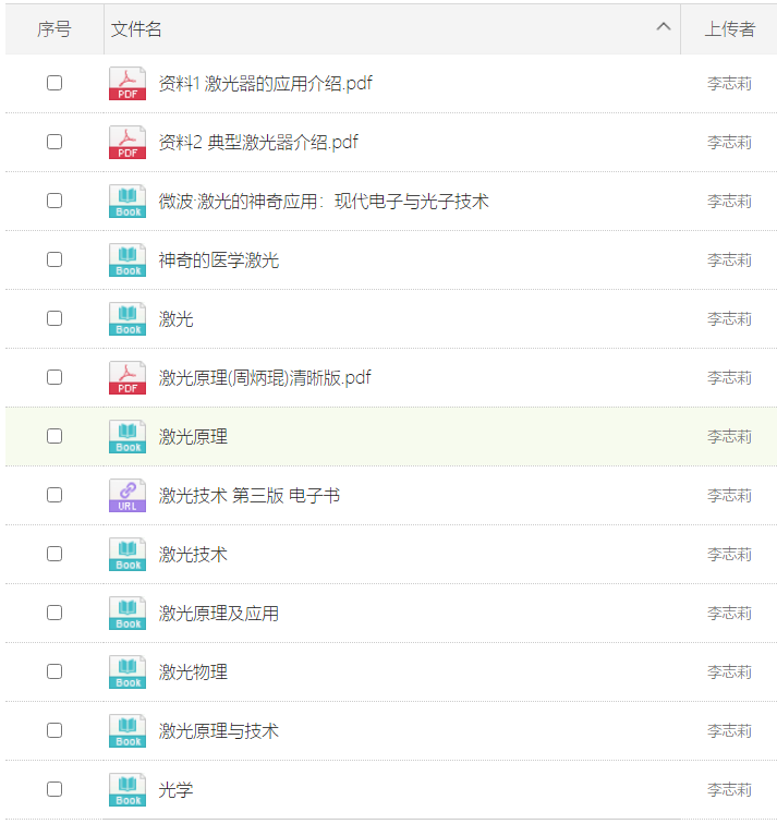 | 课程章节 | | 文件类型 | | 修改时间 | | 大小 | | 备注 | |