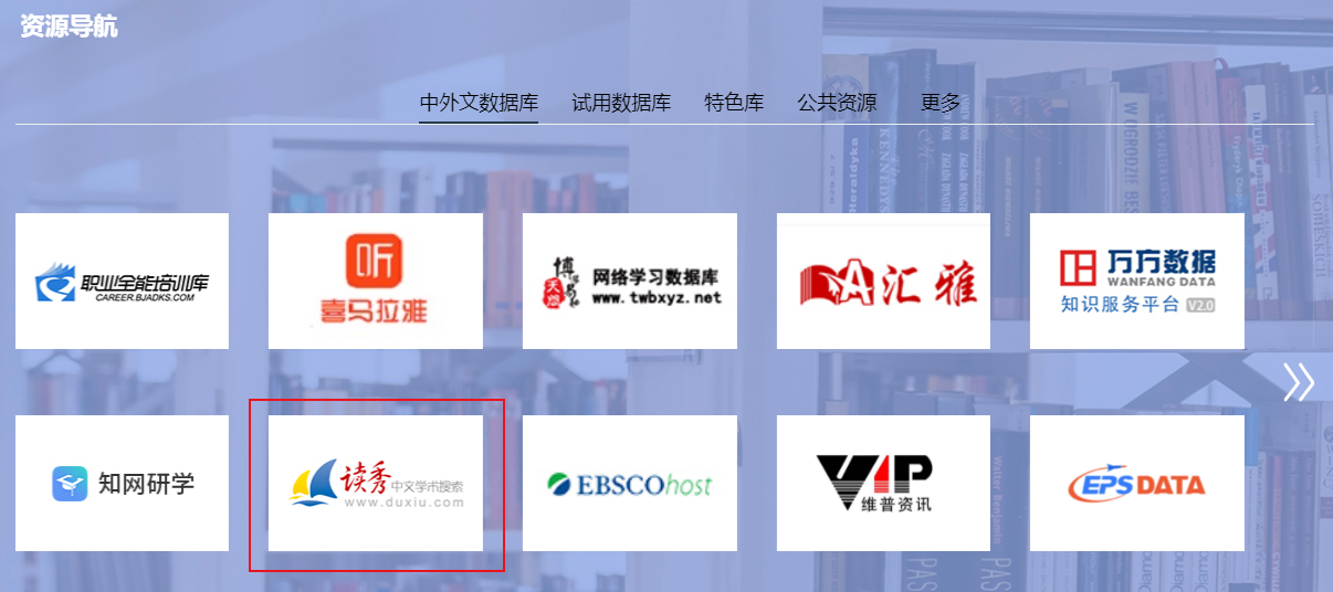 图书馆网站上提供了“读秀学术搜索”数据库链接。