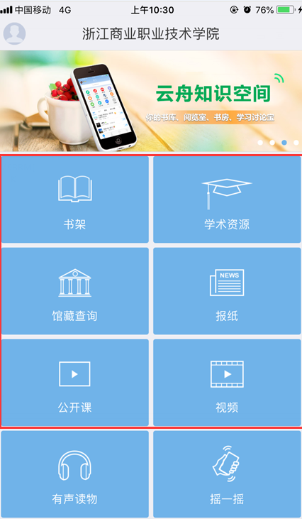 超星的移动图书馆是超星提供的一个在线图书、期刊、报纸等数字资源综合访问平台,有WAP版及App版。下图为App版访问界面。详见4.1.3节介绍。