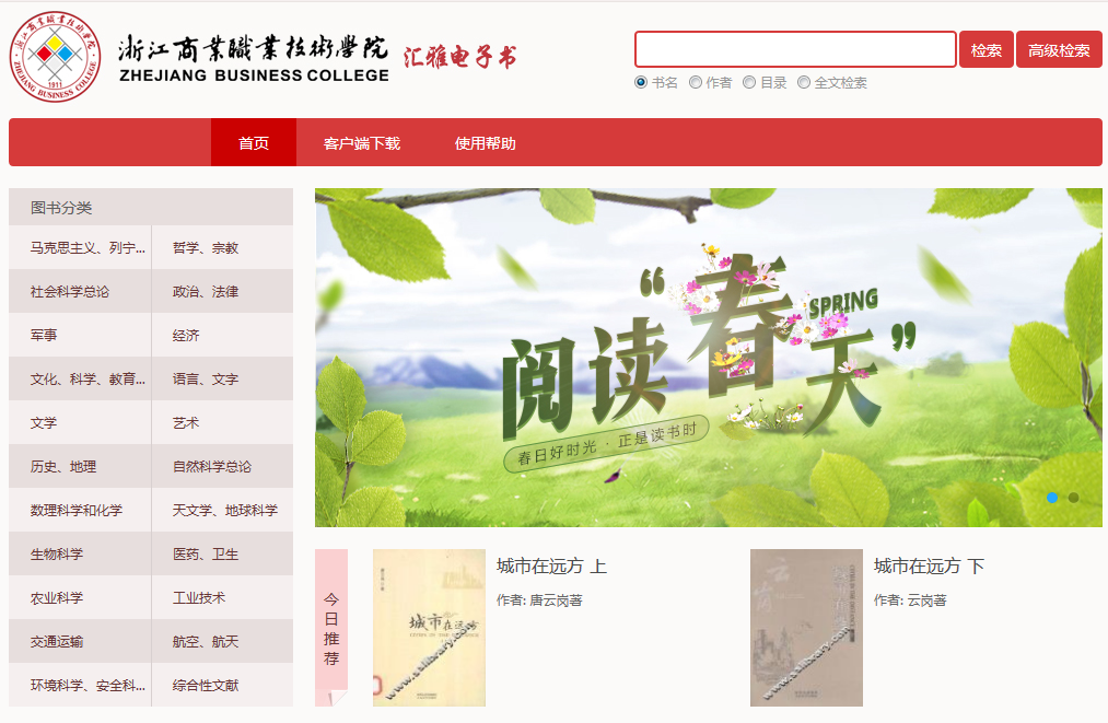 超星汇雅电子书是全球最大的中文在线图书平台,目前拥有中文电子图书100万种,涵盖中图法22个大类。在我校内网范围内可以直接访问。详见4.1.2节介绍。