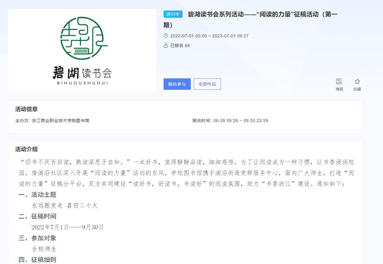 同学们可以选择自己喜欢的活动参加,点开活动连接,在详情页中几点“报名参加”。