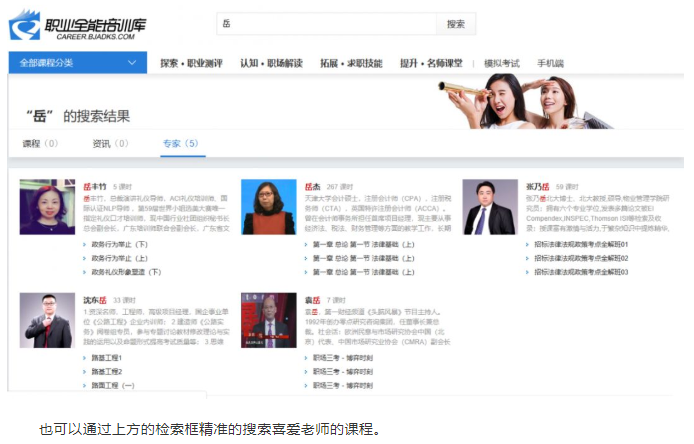 《职业全能培训库》 以大学生求职全过程作为关注点,将求职就业与个人职业发展相结合,用户可从“职业测评”“职场解读”“名师课堂”“模拟考试”“求职技能”等八大内容版块来实现个人职业发展。