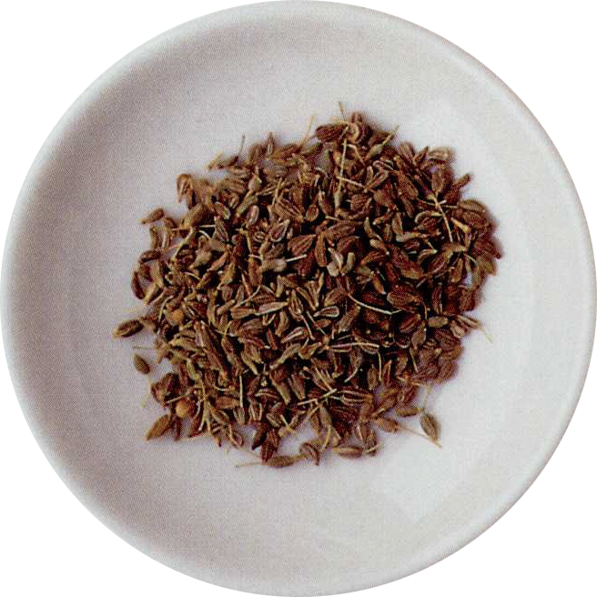 | 用于日式烹饪。由花椒的干叶磨碎 而成,有一种像柠檬一样的胡椒的味道。必须少量取用。 | 一种带辛辣甜味的坚硬的小籽。用于烘焙食品,特别是饼干和蛋糕的调味,用于话梅和腌制小黄瓜中, 用于茴芹口味的酒水饮料之中,还用来掩盖一些止咳药的强烈味道。 | 用于泡菜中,在印度烹饪中用作面包的调味品,在制药行业用来制作漱口药水。有淡淡的茴香味,也用于某些白酒的酿造。 | ||