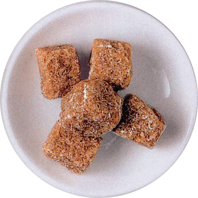 大块棕色晶体,溶化速度慢,可以一点一点地去除咖啡的苦味,因此适用于热咖啡。 | 由未经提纯的天然蔗糖制成。用于咖啡和其他热饮中。也有粗糙的白色方糖。