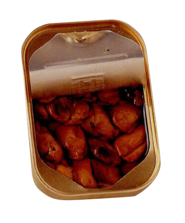 | 烟熏蚌 ▆ 也有不是烟熏的蚌出售,以很多的沙司佐食。放入冰箱冷藏,一旦打开后需在24小时之内食用。放在饼干上当作开胃菜食用。 |