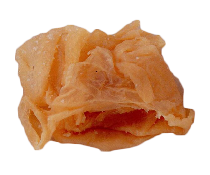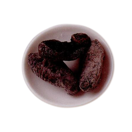 ▆  一种从海鳗的胃取出的柔软的薄膜,经过干燥,油炸成一种蜂窝状脆片。温水浸泡软化,然后加醋煮几分钟即可。添加其他原料之前挤出剩余的水分。自身无味,但是易于接受其他味道。置于阴凉干燥处贮存。