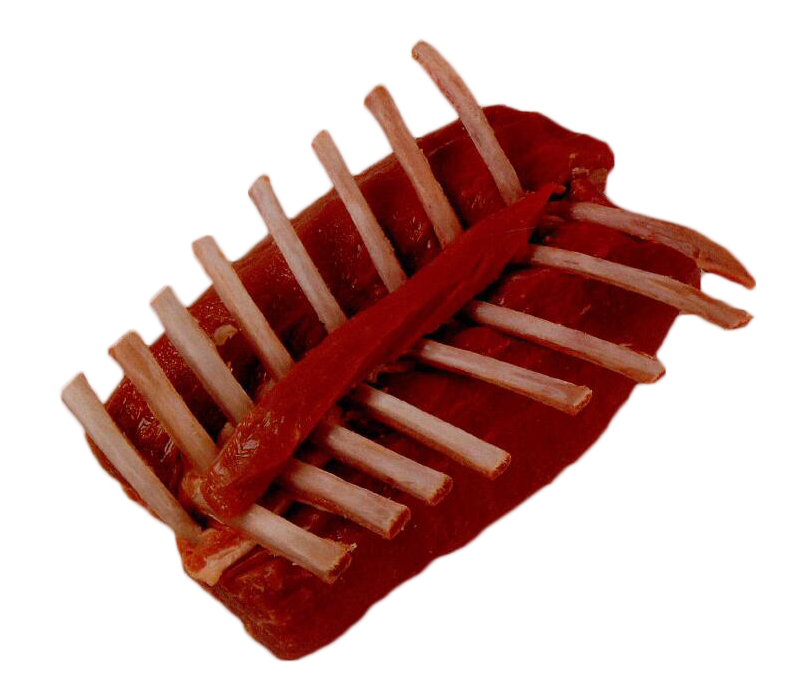 ![]() | 切片用的腰后背部肉 ▆ 用法式方法修整的羊肉块, 所有骨头外露。 |