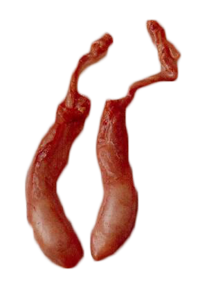 ![]() | 羊内脏 ▆ 从小动物颈部和胸部却除的胰腺和胸腺。需要加醋冷水浸泡2-3个小时, 中间不断换水。可以水煮几分钟以便烹饪。去除薄膜和软管。用两个盘子 压住,放入冰箱冷藏数个小时后就可以水煮、烤串、油炸、红烧或炒。 |