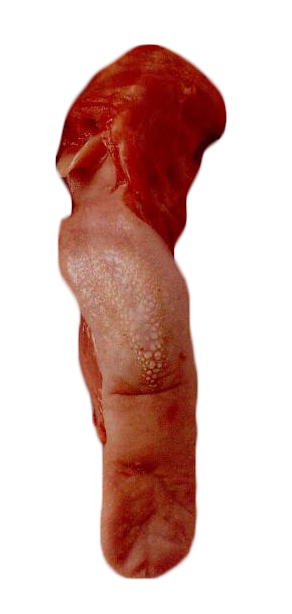 | 猪舌头 ▆ 在肉店里通常烟熏或盐渍出售,虽然有时 也有新鲜的舌头出售。选购柔软的舌头, 如果是盐渍的,要加芳香蔬菜和香草水中 隔夜浸泡至嫩为止。去皮后切成薄片。加 酱汁和马铃薯趁热食用,或者与山葵、泡 菜、芥末和沙拉冷食。牛舌头的味道最 好;羊舌头很嫩;猪舌头次之。 |