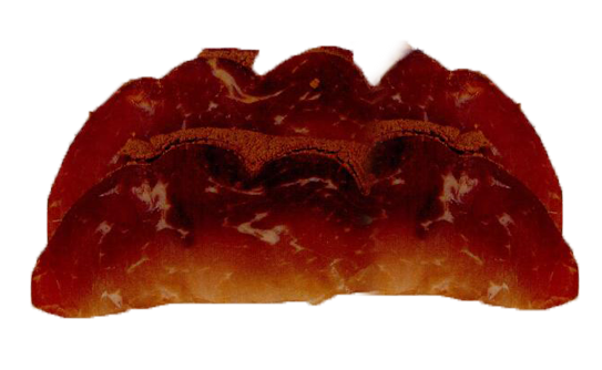 ![]() | 咸牛肉 ▆ 与五香熏牛肉相似,加入多种香料风干而成。切 成细片直接食用,或者稍微煎一下食用。 |