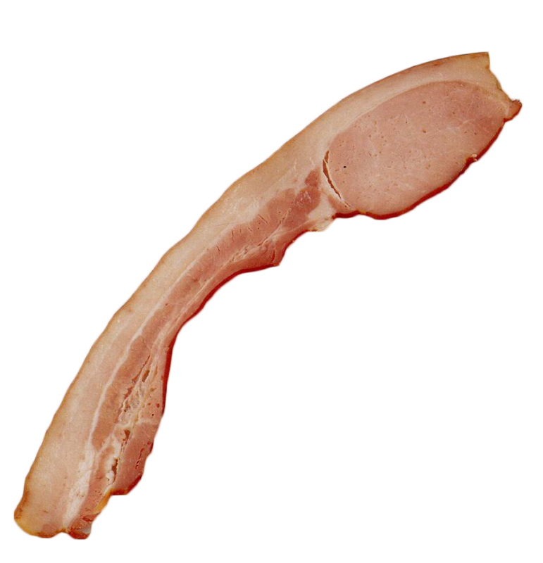 ![]() | 培根 ▆ 一种腌制的烟熏的眼状瘦猪肉,切成薄片或厚 片出售,尾端去除。用来做早餐、烤串、沙 拉、意大利面食酱汁,为砂锅菜添加风味。 |