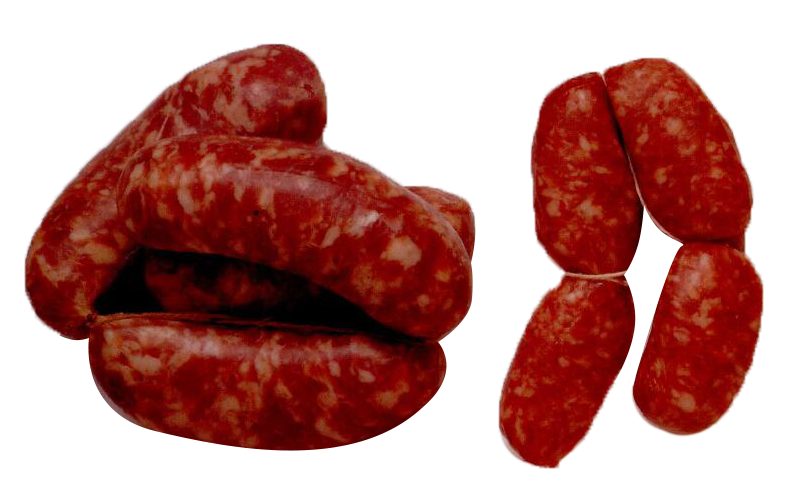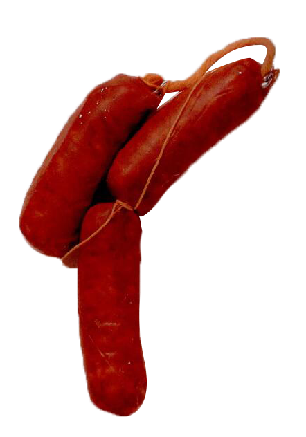 ▆  一种肉质非常粗糙的香肠,由猪肉和/或牛肉,烟熏调味制成。直接食用,或者加水文火慢煮几分钟即可。