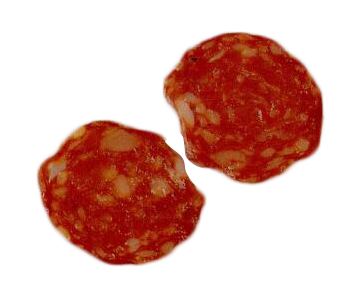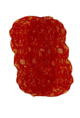 ![]() | 意大利辣香肠 ▆ 一种辛辣的意大利式萨拉米香肠,原产于西班牙,主要加红辣椒粉调香,由猪肉和/或牛肉加肥肉制成。经常用在比萨上。 |