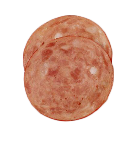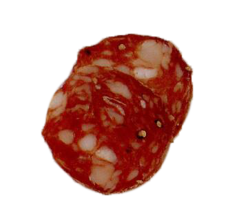 | 意大利萨拉米香肠 ▆ 一种不辛辣的萨拉米香肠,由猪肉和牛肉加几片红辣椒制成。 |