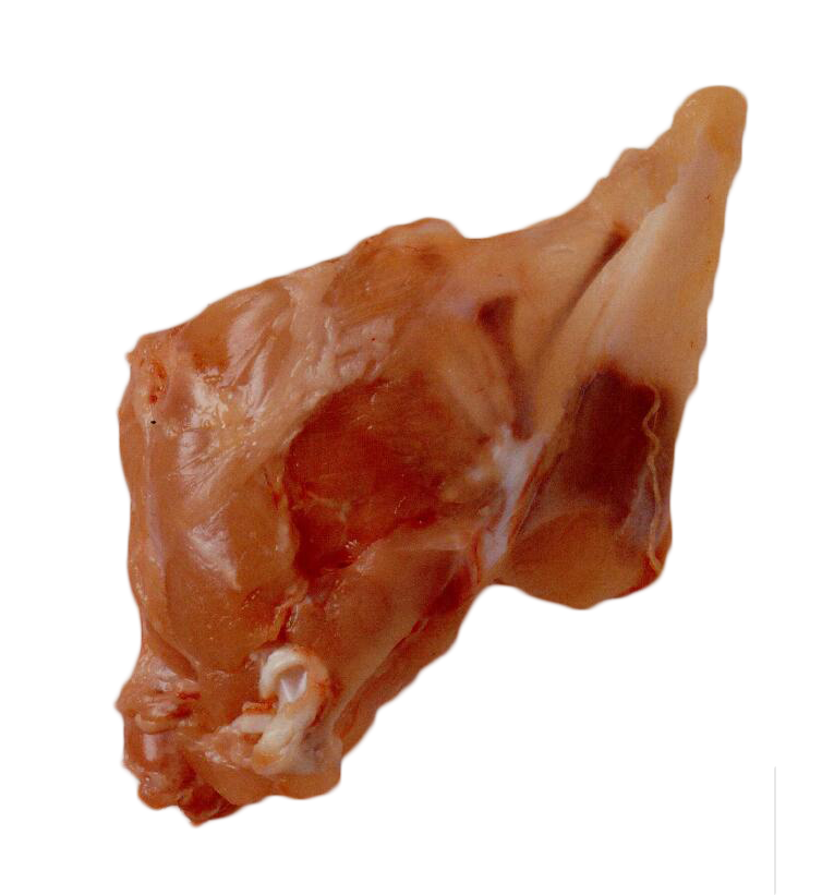 ![]() | 鸡胸脯肉带皮 ▆ 去除肋骨的鸡胸肉,连鸡翅膀。适于填馅和烧烤。 |