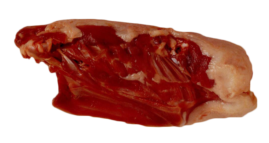 | 鸭胸无骨 ▆ 从骨剔下的鸭胸的一侧,连带翅。适于烧烤或红烧。 |