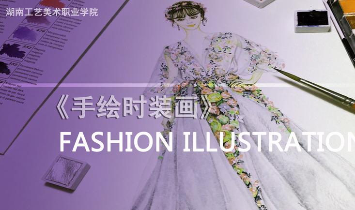 《手绘时装画》课程是服装与服饰设计(时装设计与工艺)专业基础造型模块中的专业必修课程。该课程注重培养学生的基本专业能力—时装画的表达方式和表现技法。首先通过讲授时装画概述、时装画的分类、作用以及时装画的表现形式来培养学生对服装专业的兴趣,通过讲授服装款式图的比例结构让学生能准确手绘服装款式图。其次通过时装画人体基础知识的讲授与实训,使学生掌握时装画人体比例与结构、男女童人体的特征、人体与服装的关系,使学生了解人体与服装之间的关系。注重人体头、手、脚局部细节的刻画,熟练人体各种姿态的描绘。通过临摹实训提高人体及着装的表现。掌握各种工具及特殊技法的表现方法,并能绘制不同风格的时装画;掌握不同面料的质感表现方法、不同服装面料图案的表现方法,培养学生独立进行服装款式图及服装效果图的表达及创作。