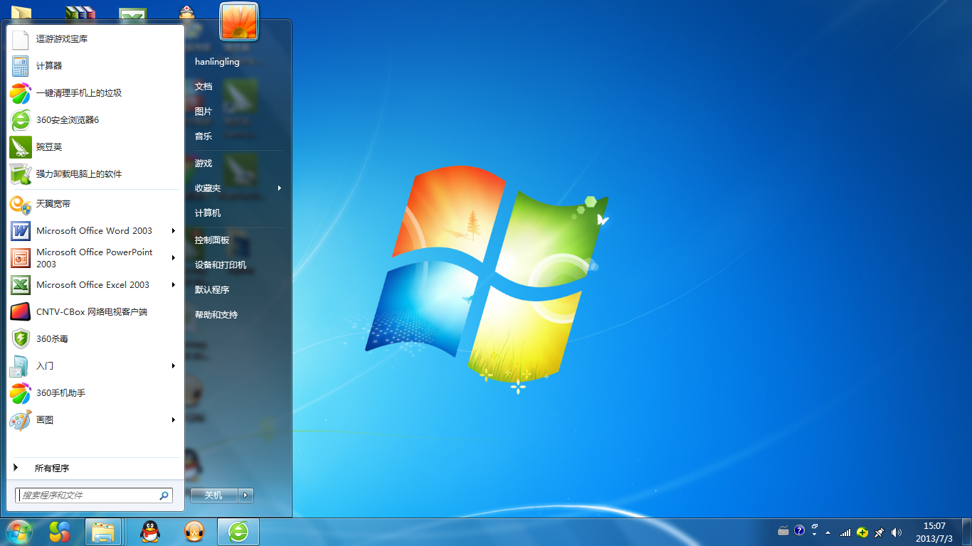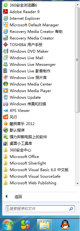 在“开始”菜单中选择“所有程序”,即出现所有应用程序菜单项,可以启动应用程序。