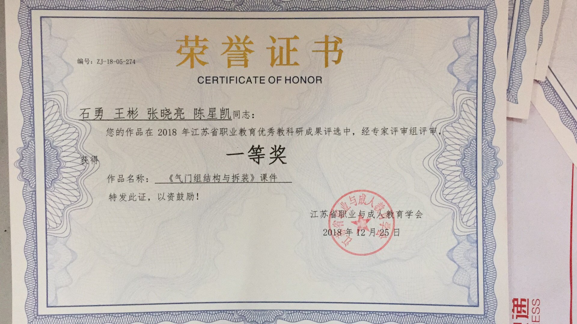 4.2018年省职业教学成果评比一等奖(《气门组结构与拆装》课件(石勇,王彬,张晓亮,陈星凯)