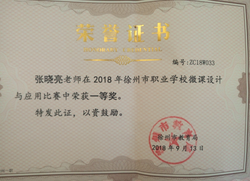 2018年9月,2018年徐州市微课设计比赛一等奖 (市级)
