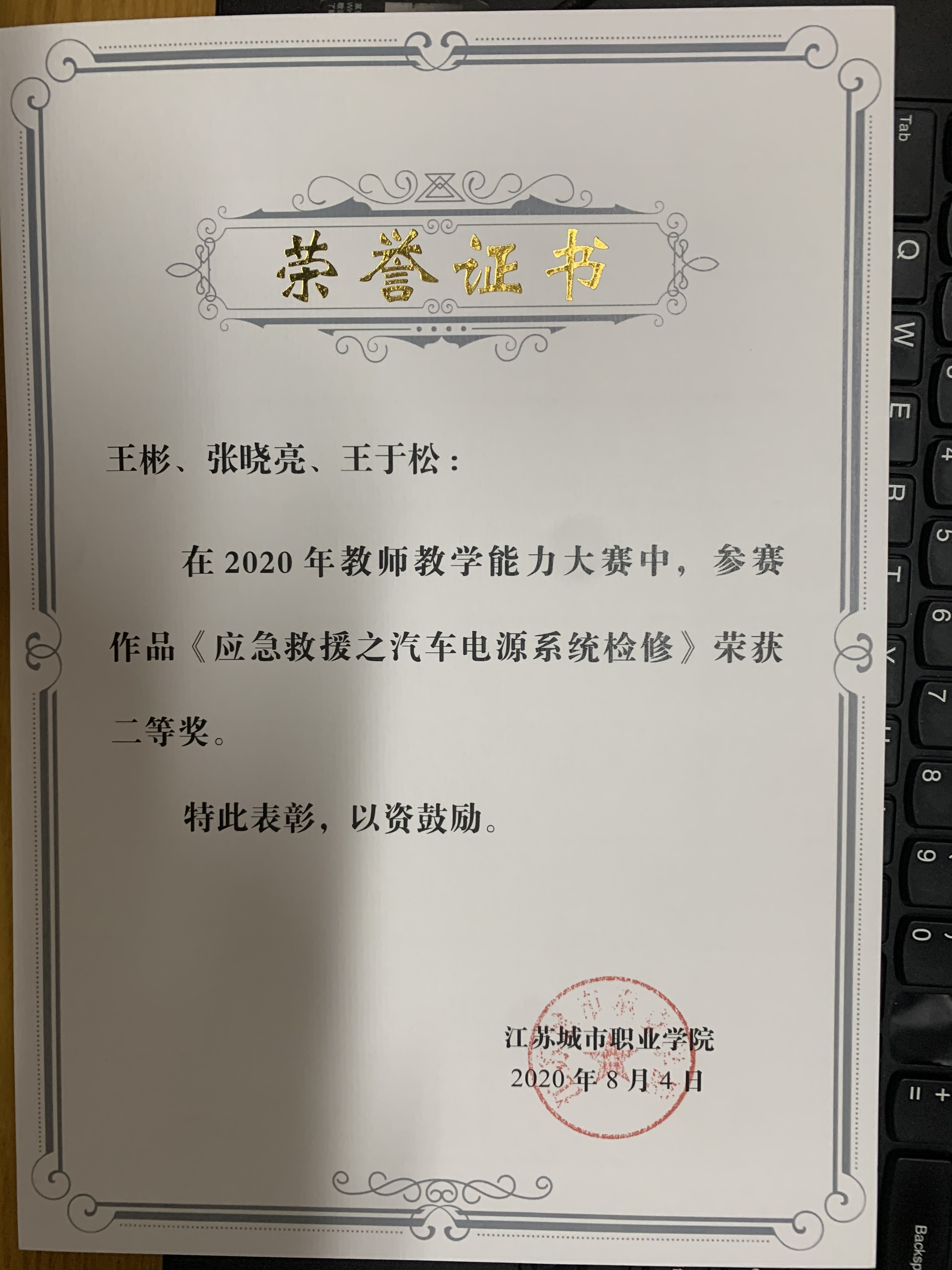 7.2020年江苏省城市职业技术学院教学大赛二等奖(王彬,张晓亮,王于松)