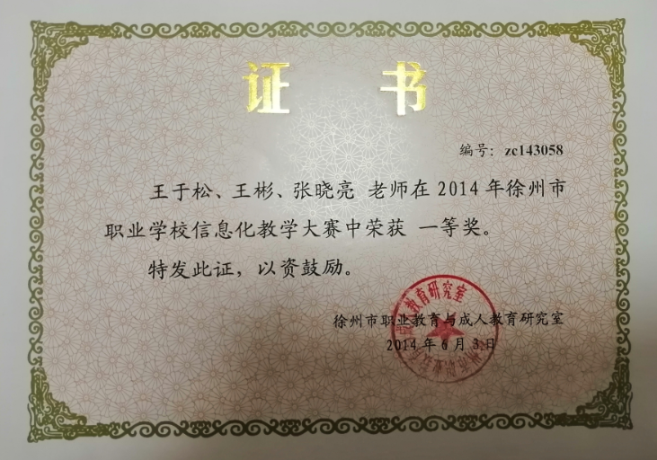 2014年6月,2014年徐州市信息化教学大赛一等奖 (市级)