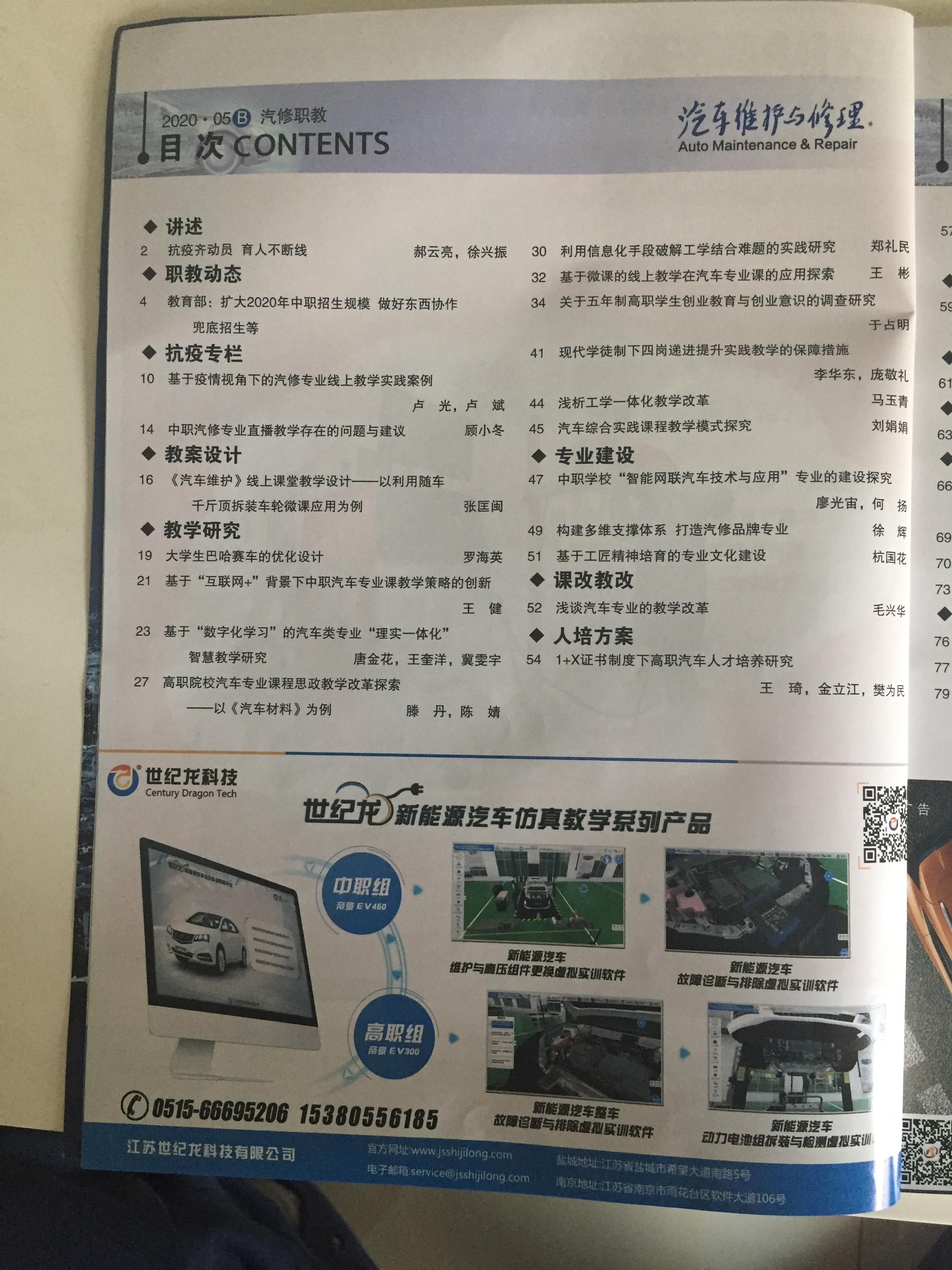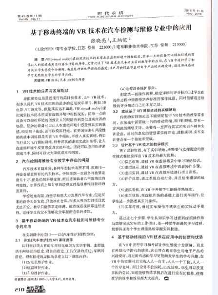 1、(校级)2018年11月,《基于移动终端的VR技术在汽车检测与维修专业中的应用》发表在《时代农机》第11期