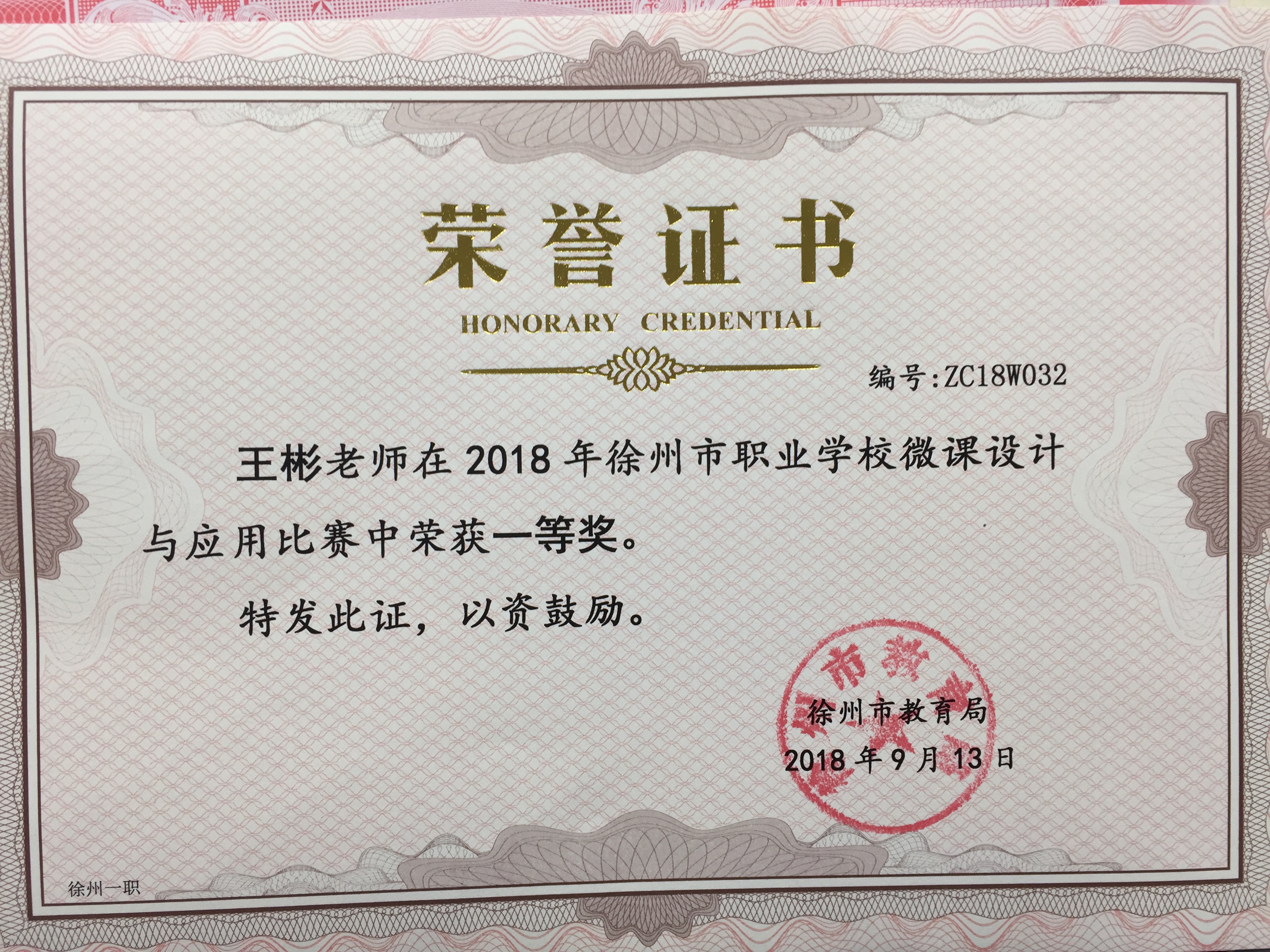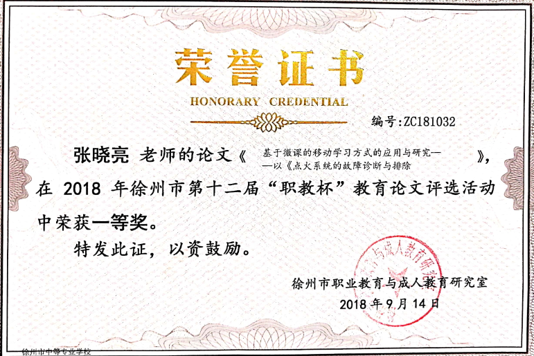 1、(市级)2018年19月,徐州市“职教杯”教育论文评选 一等奖
