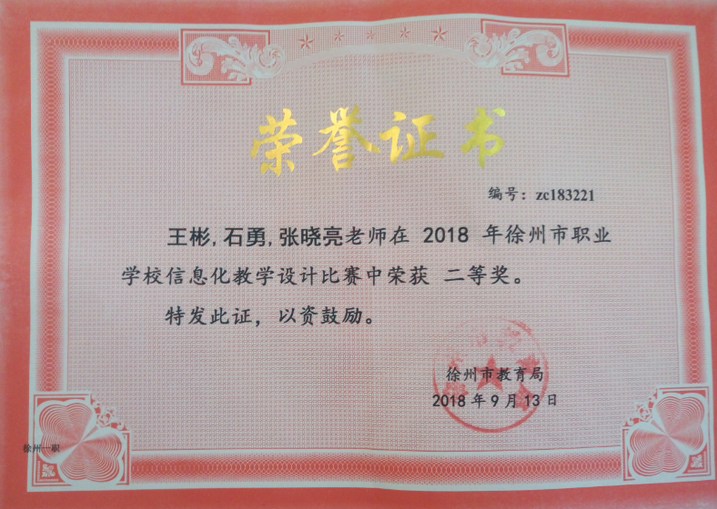 2018年9月,2018年徐州市信息化教学大赛二等奖 (市级)