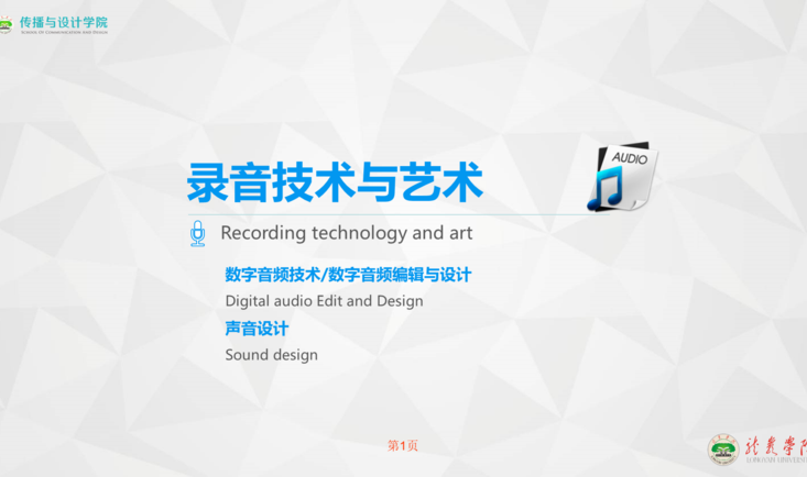 《录音技术与艺术》(数字音频编辑与设计/数字音频技术)是广播电视学/网络与新媒体专业核心课程,通过本课程的学习,使学生能掌握音频的基本理论知识和实践应用常识,了解常用音频设备的原理及使用,熟练掌握数字音频处理软件技术,并进行声音艺术创作(音频创作及声画创作)(音频创作及声画创作);在课程中融入视听创作中国元素、社会主义核心价值观公益广告等思政内容。