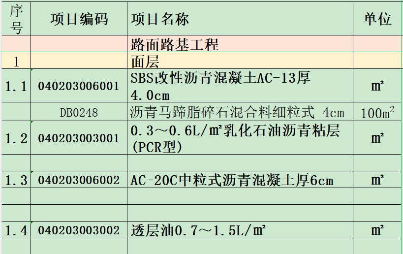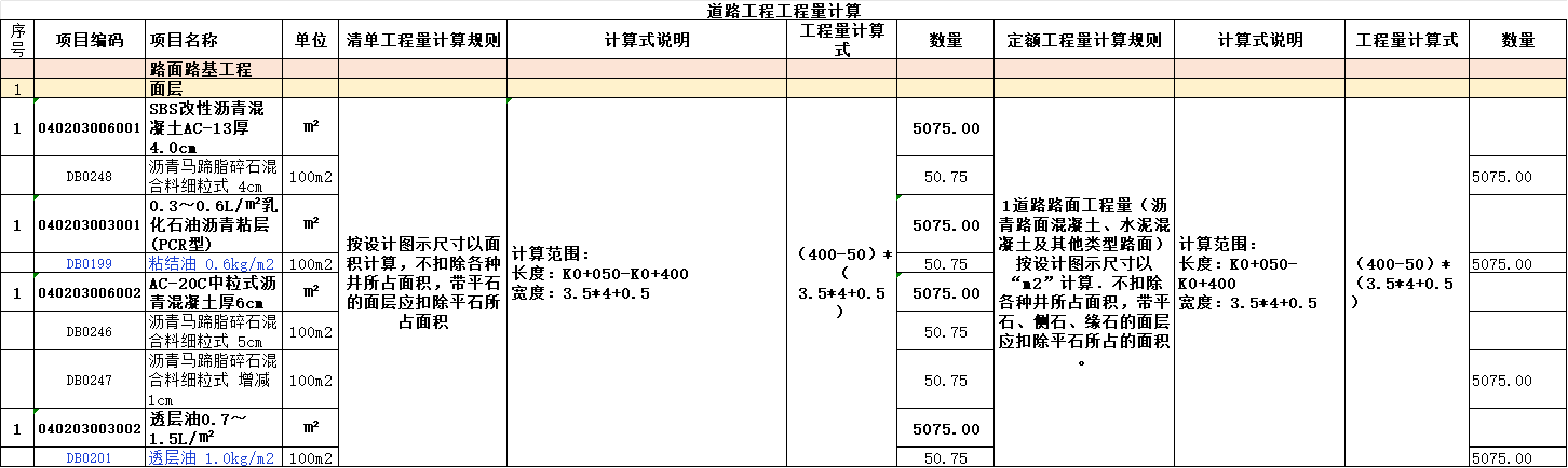 路面面层的计价