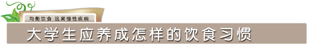 综上所诉,当代大学生不合理的饮食习惯将导致很多慢性疾病的发生,所以,为了避免老来病魔缠身,可以从现在开始养成一个良好的饮食习惯。