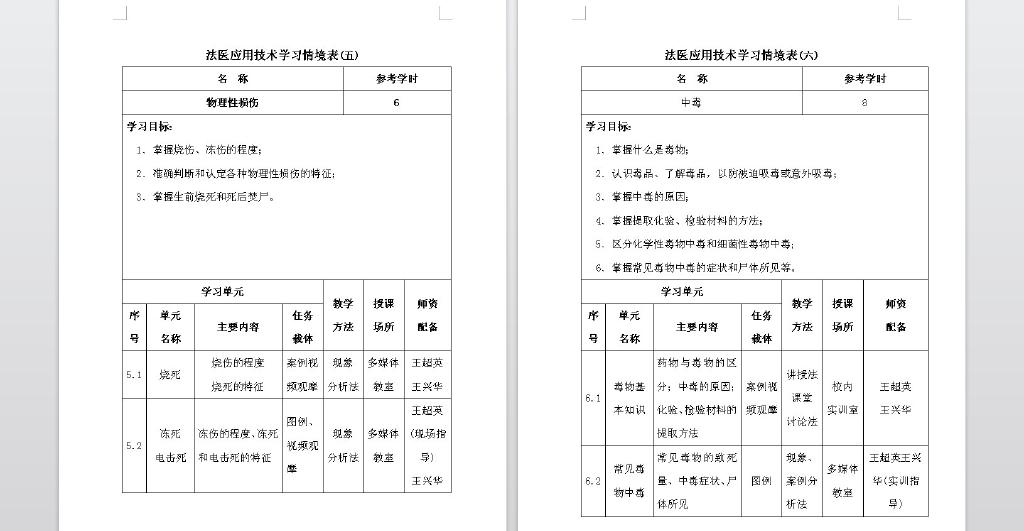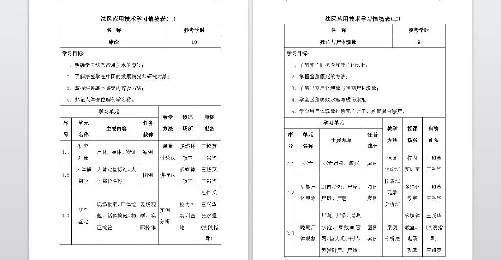 本课程设计共有七大学习情境,按照一般的逻辑规律从法医应用技术基础知识到具体操作方法,以法医检验为主线,突出职业教育思想,打破学科教育的模式,以常见典型案例为学习载体重新整合教学内容,设计学习法医应用技术情境。