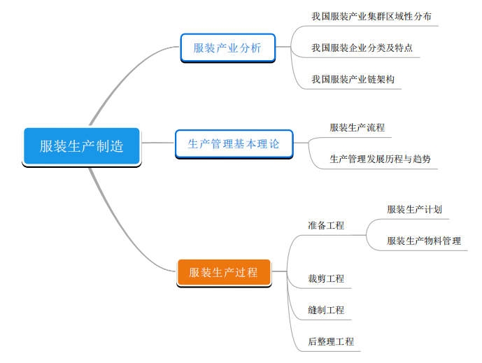 本课程以服装工业化生产的理论与实践为中心,以服装生产流程为主线,从服装企业生产系统管理的角度对服装生产过程的主要环节进行了全面细致的阐述,主要介绍服装生产准备、裁剪、缝制、熨烫、后整理等工艺过程,向学生展示最新服装生产技术的同时,向学生传授简单的生产管理思想与方法。要求学生能够掌握生产管理理论在服装生产中的运用及具体的控制方法,以适应服装工业快速发展的需要。
