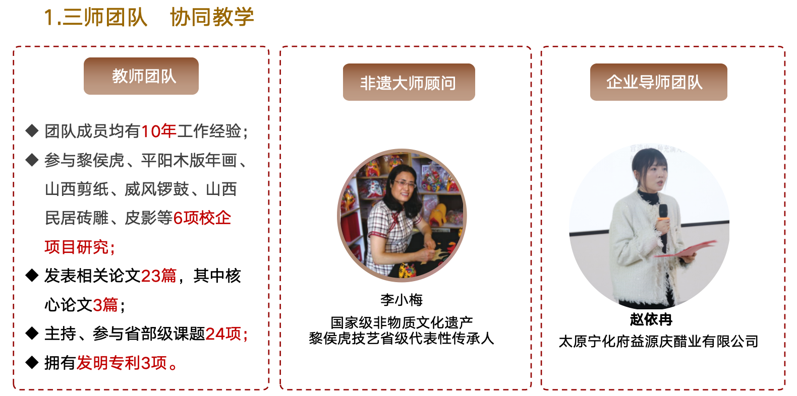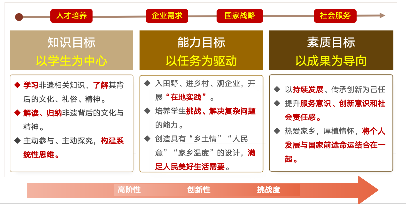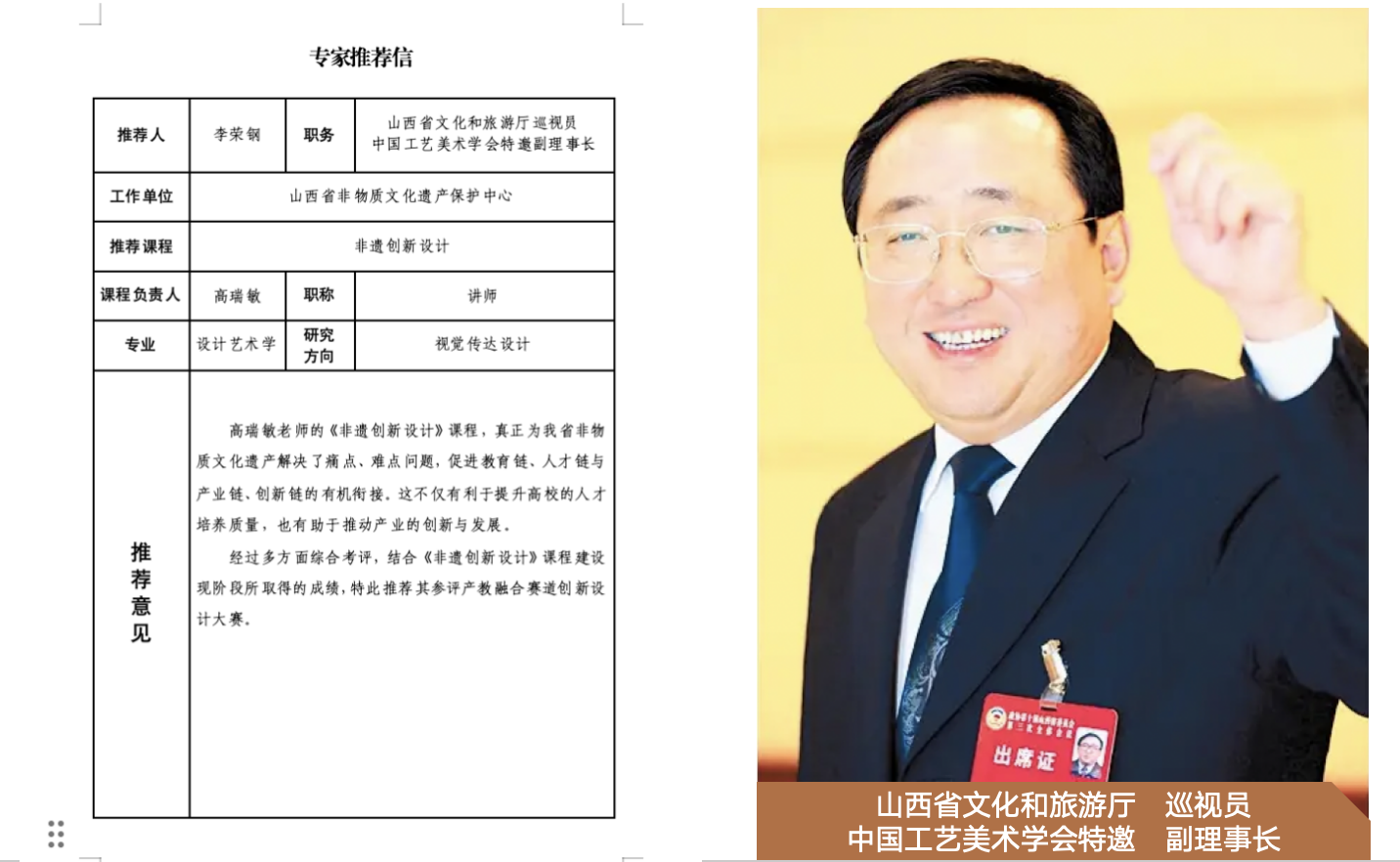 这门课会讲什么? 《非遗创新设计》是视觉传达设计专业的一门专业课,课程立足山西,指导学生了解非遗形态与发展现状,掌握素材搜集、整理和创新设计的方法,结合实际问题开展“在地实践”。能够运用设计思维解决非遗创造性转化和创新性发展问题,培养学生挑战、解决复杂问题的能力,创造具有“乡土情”、“人民意”、“家乡温度”的创新设计,满足人民美好生活需要。同时基于在地实践,理解非遗社会价值,增强人民内生发展动力。引导学生关注社情、民情、乡情,提升服务意识、创新意识和社会责任感。 本课程包括以下几方面内容: 1.非遗创新设计调研:包括文化调研、市场调研、产品分类等相关信息的搜集,挖掘研究对象的纵深度。 2.非遗创新设计策划:包括文化元素提取、产品定位、目标人群、材料工艺、设计理念的分析,利用头脑风暴、思维导图规划完整的设计方案。 3.非遗创新设计与开发:包括草图绘制、效果图设计、包装设计、作品打样等流程,完成创新设计。 4.非遗创新设计综合评估:包括项目文案故事、营销方案、市场综合评估,完善产品在设计活动中产生的艺术审美、科学技术及消费经济特征。
