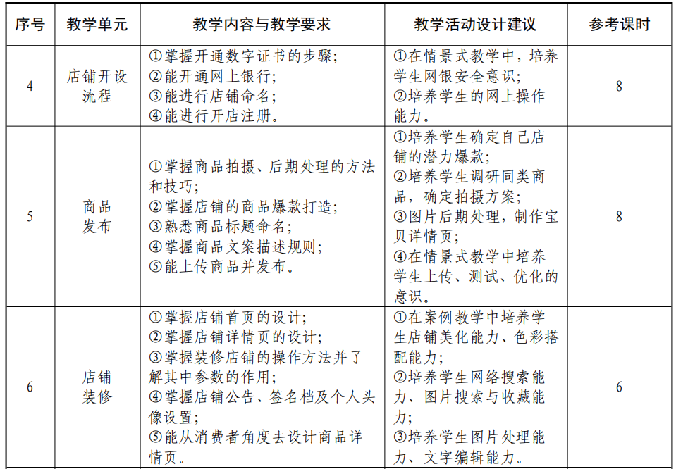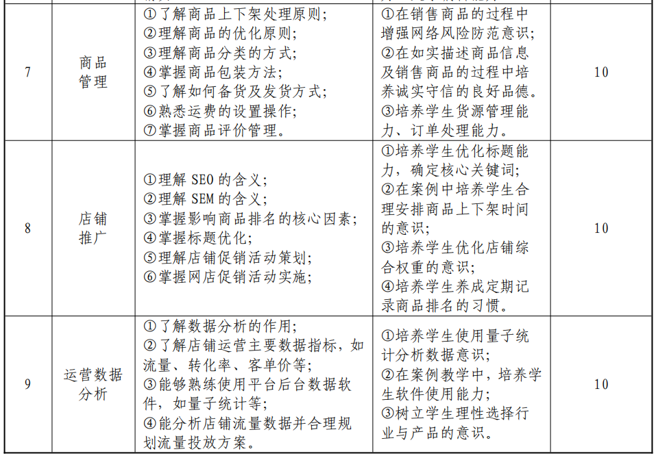 本课程是中等职业学校电子商务专业的一门专业核心课程。通过本课程的学习,使学生掌握数字化时代电商平台运营规则和方法,能够进行店铺定位和规划、完成店铺开设、店铺装修、商品发布、商品管理、商品推广、运营数据分析等主要工作,具备店铺规划能力、店铺开设装修能力、商品发布与管理能力、引流推广能力和运营数据分析能力,能够胜任数字化零售运营工作岗位。