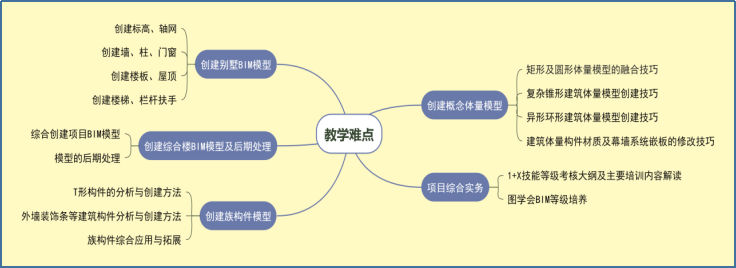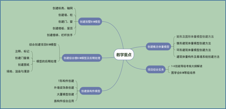 通过Revit基础建模技术的学习和掌握,逐步具备独立创建建筑模型能力,对接专业标准、岗位需求实施综合模型,创建族构件与体量模型,通过1+X证书的考试,技能大赛等形式,获得等级水平能力证明,即对在校学生实施课程的培养,也能够对企业员工、社会培训展开技能服务。