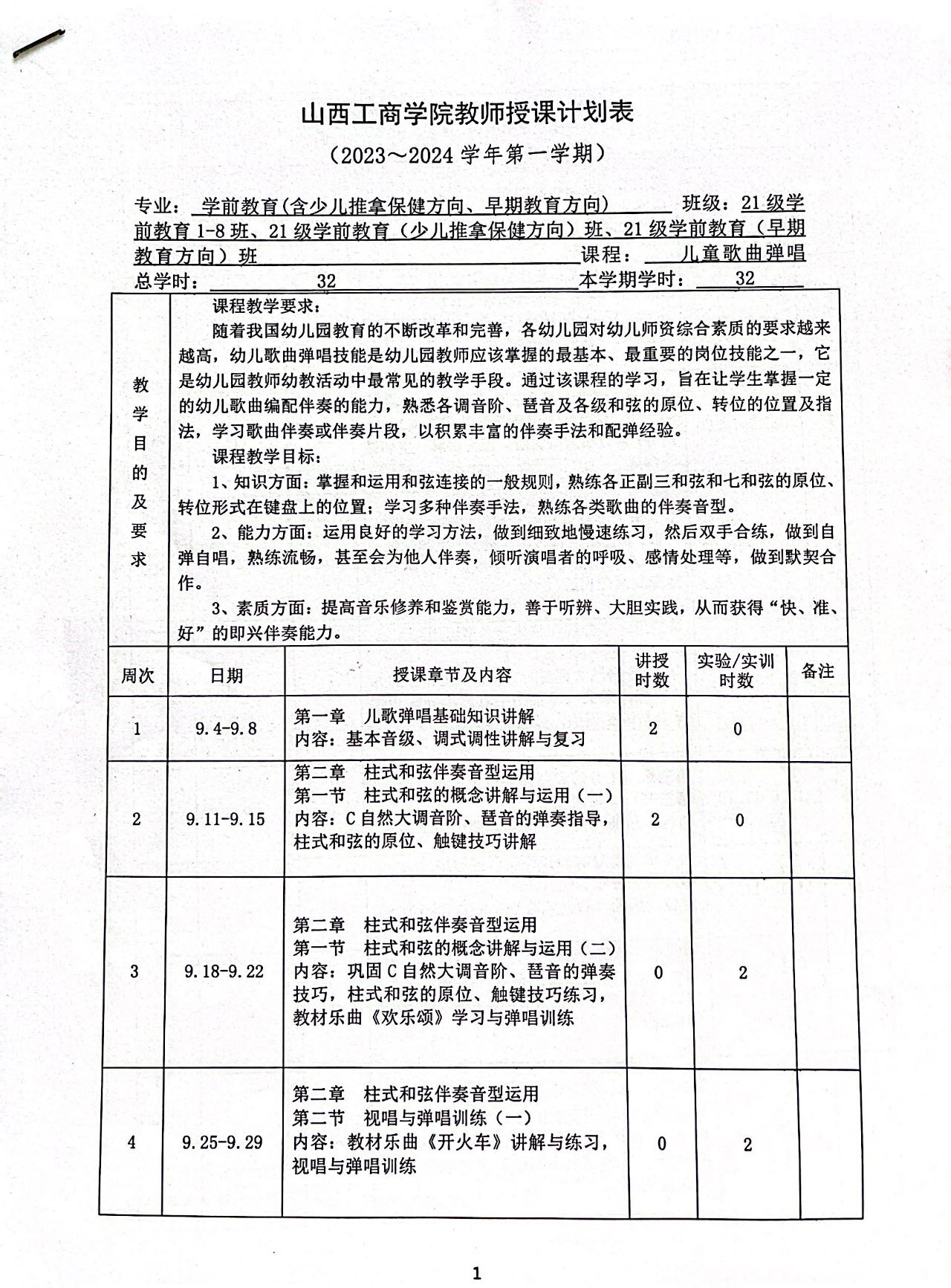 《儿童歌曲弹唱》是学前教育学院开设的一门专业选修课程,开设于第五学期,32学时,2学分,它的先修课程是《学前儿童钢琴基础》《基本乐理》《儿歌演唱》等相关的音乐类课程。开设这门课程是为了帮助学生在掌握钢琴基本演奏技巧的同时,结合乐理知识以及钢琴伴奏要点,为儿歌配不同织体的伴奏,丰富儿歌形式,最终达到自弹自唱的要求,成为一名应用型人才。课程的开设服务于学生教师资格证面试的同时也提高了学生就业的竞争力。