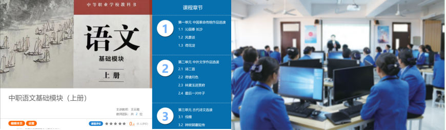 高等教育出版社出版的中职语文基础模块上册从中国革命传统作品选读、中外文学作品选读、古代诗文选读、整本书阅读与研讨、社会主义先进文化作品选读、古代诗文选读、实用性阅读与交流、语感与语言习得八个单元,对学生进行养成教育。情感是人生的驿站,亲情让学生感受温馨,乡情让学生心有所依,友情让学生快乐聪慧;拥有了理性的目光,让学生少一分浮躁多一分从容,少一分迷茫多一份清醒,少一分失败多一分机会;赤城不会因时间的流逝而褪色,赤城经过岁月的洗礼更加熠熠生辉,学生拥有赤城,拥有幸福;艺术是一种享受,学生会步入宏伟瑰丽的艺术殿堂,拥抱艺术,享受生活;徜徉在历史的记忆中,学生会采摘前人的智慧,创造更加美好的未来;学生以开放的眼光、包容的气度、改革的精神、创新的勇气,去创造更加辉煌灿烂的现代文明。