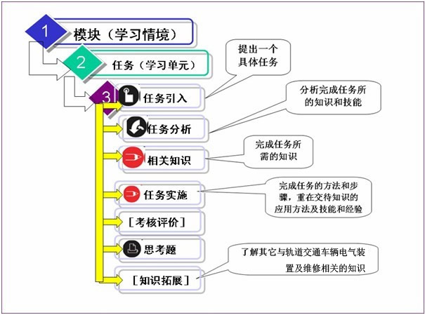 以轨道交通车辆操作及故障处理实践为主线,改变传统的教学模式,学习过程以学生训练为主,教师指导为辅,学生通过实际的车辆操作过程和各种实际的分析、处理车辆故障的过程,寻找解决实际问题的方法,掌握实际工作能力,并通过模拟训练、小组讨论、查阅资料、上网检索、教师讲授等方法,获取相关专业知识和理论。