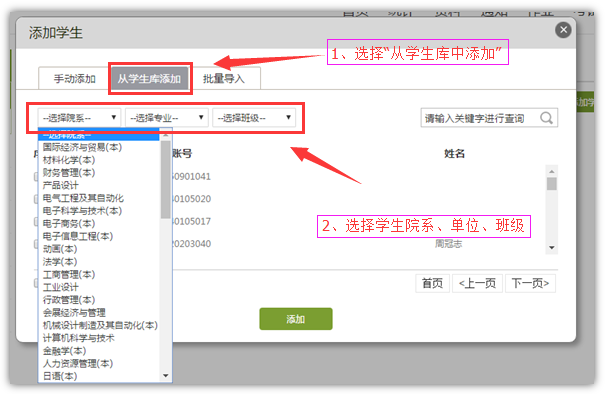 方法2:从学生库中添加。