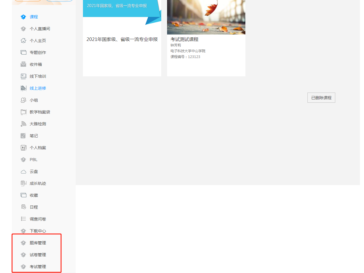 考试管理在登录系统的首页面左下方位置,共三个模块