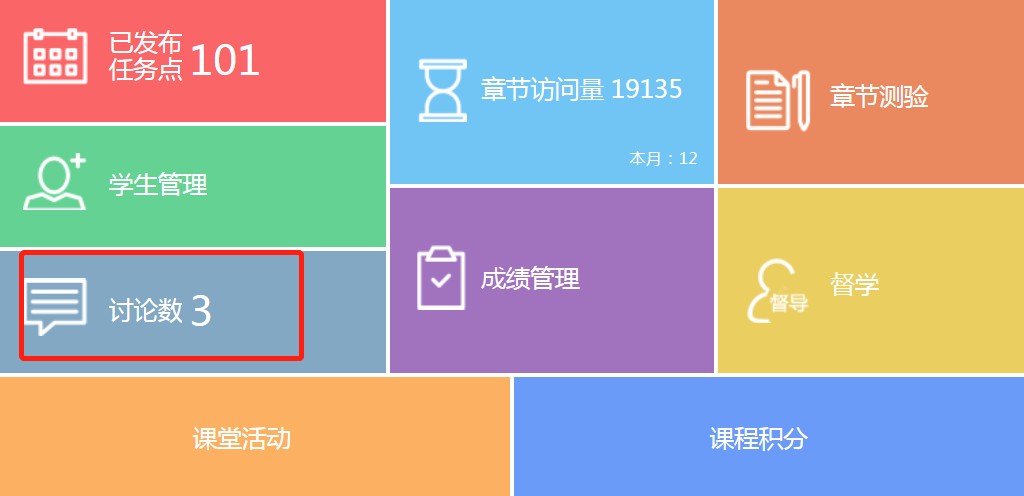 统计界面,点击“讨论”按钮查看学生学习时的讨论情况