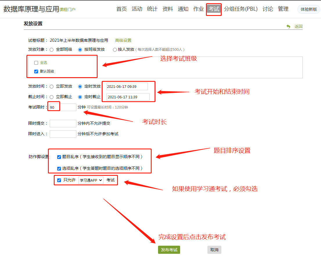 步骤5、考试发布成功,学生就可以在规定时间开始考试啦。