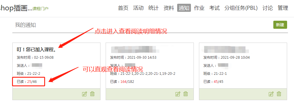 查看通知发布学生阅读情况。