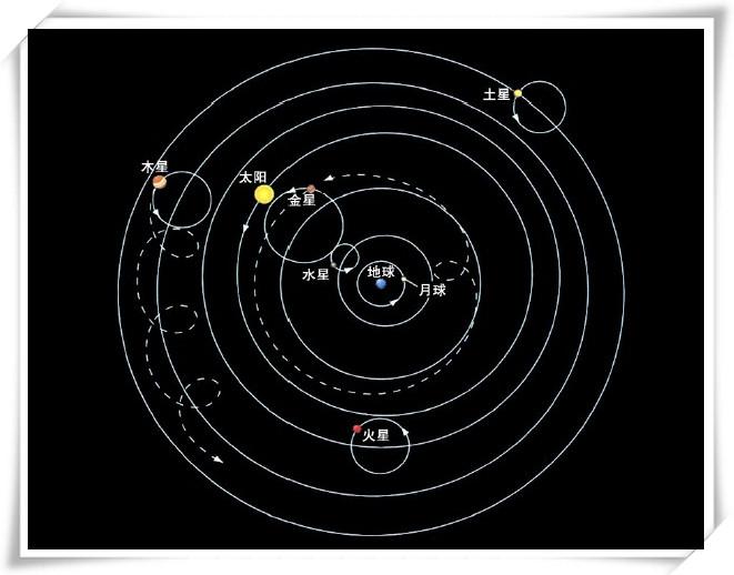 人居住的地球,静静地屹立在宇宙的中心。托勒密全面继承了亚里士多德的地心说,并利用前人积累和他自己长期观测得到的数据,写成了8卷本的《伟大论》。在书中,他把亚里士多德的9层天扩大为11层,把原动力天改为晶莹天,又往外添加了最高天和净火天。托勒密设想,各行星都绕着一个较小的圆周上运动,而每个圆的圆心则在以地球为中心的圆周上运动。他把绕地球的那个圆叫“均轮”,每个小圆叫“本轮”。同时假设地球并不恰好在均轮的中心,而偏开一定的距离,均轮是一些偏心圆;日月行星除作上述轨道运行外,还与众恒星一起,每天绕地球转动一周。托勒密这个不反映宇宙实际结构的数学图景,却较为完满的解释了当时观测到的行星运动情况,并取得了航海上的实用价值,从而被人们广为信奉。