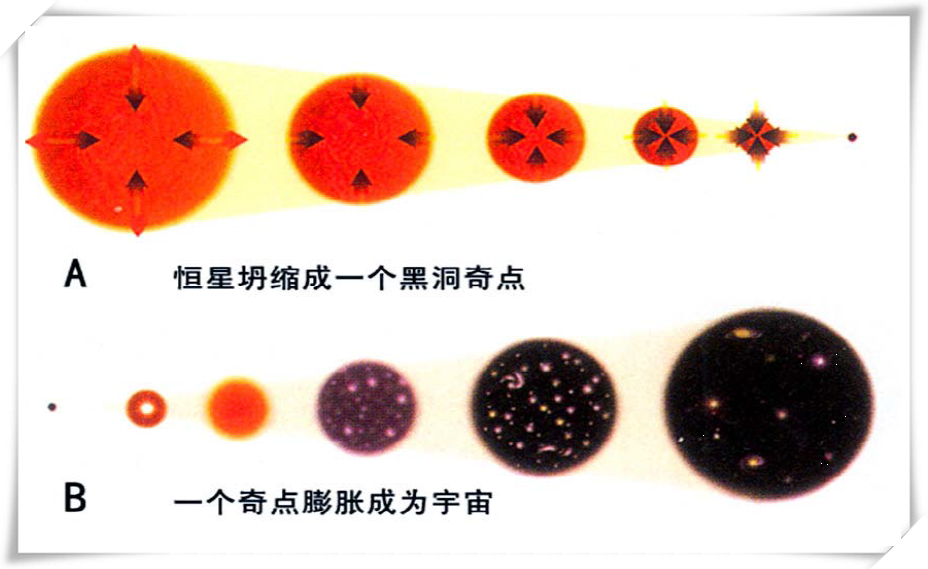 “大爆炸宇宙论”关于宇宙当初仅仅是一个点,而它周围却是一片空白,即将人类至今还不能确定范围也无法计算质量的宇宙压缩在一个极小空间内的假设只是一种臆测。