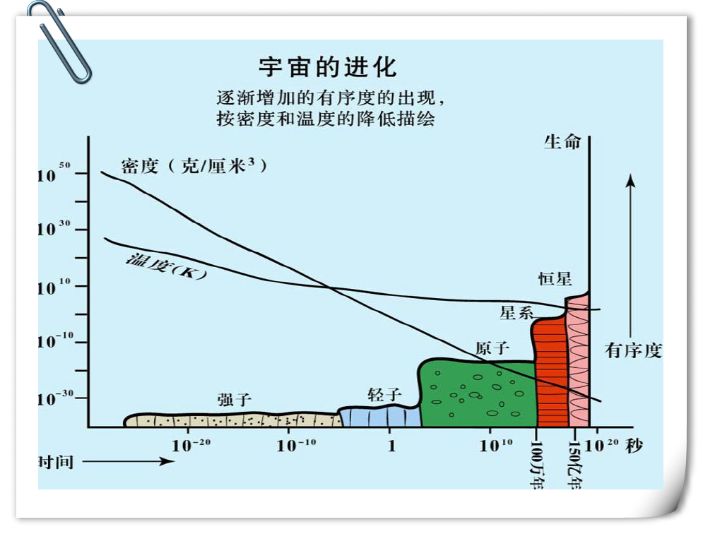 大爆炸后30万年后 3000度,化学结合作用使中性原子形成,宇宙主要成分为气态物质,并逐步在自引力作用下凝聚成密度较高的气体云块,直至恒星和恒星系统。