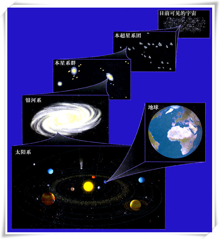 根据主流理论,今天的宇宙大约有150亿年历史(尽管也可能只有80亿年到70亿年),它的平均温度小于2.7k,我们的太阳是我们银河系中2000多亿个星星中的一个,而我们的银河系又是许多星系中的一个,在银河系之外大约有1000多亿个这样的星系,其中有些大得惊人。