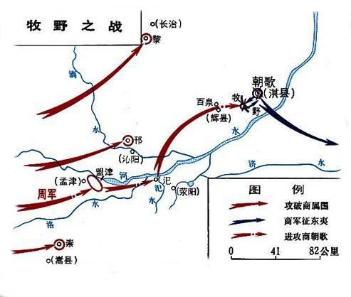 随着时间的推移,牧野之战也蒙上了一层又一层神秘的面纱。当时的记录下,帝辛尚不失为一个有严重缺陷的英雄人物,然而到了后世,纣王却成了荒淫无耻、残暴不仁的昏暴之君,被泼上了越来越多的污水。与之相应,牧野之战这场“血流漂杵”的征服战争,也就成了吊民伐罪的反抗暴政的正义之战。在后世儒家的传说中,周军“前歌后舞”,没有杀一个人,没有流一滴血,商朝就自行崩溃,在人民的拥戴下,武王登上了天子的宝座,从此刀枪入库,马放南山,天下太平。当然,这样的神话在后世仍然一场又一场地上演,不过再也没有像牧野之战这样成功的了。